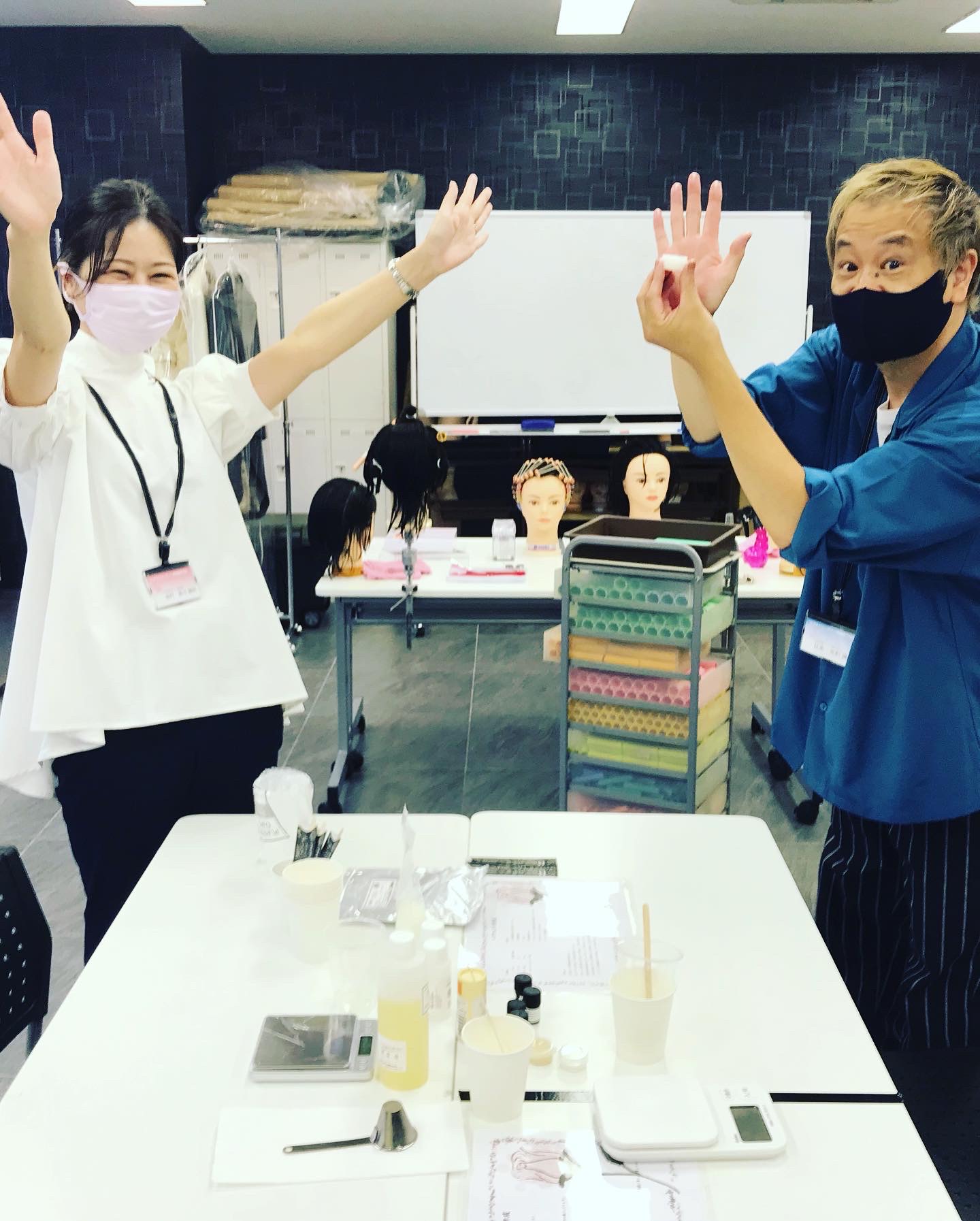 始まる前にワックス作りに挑戦してる先生と見守る先生!(^^)!