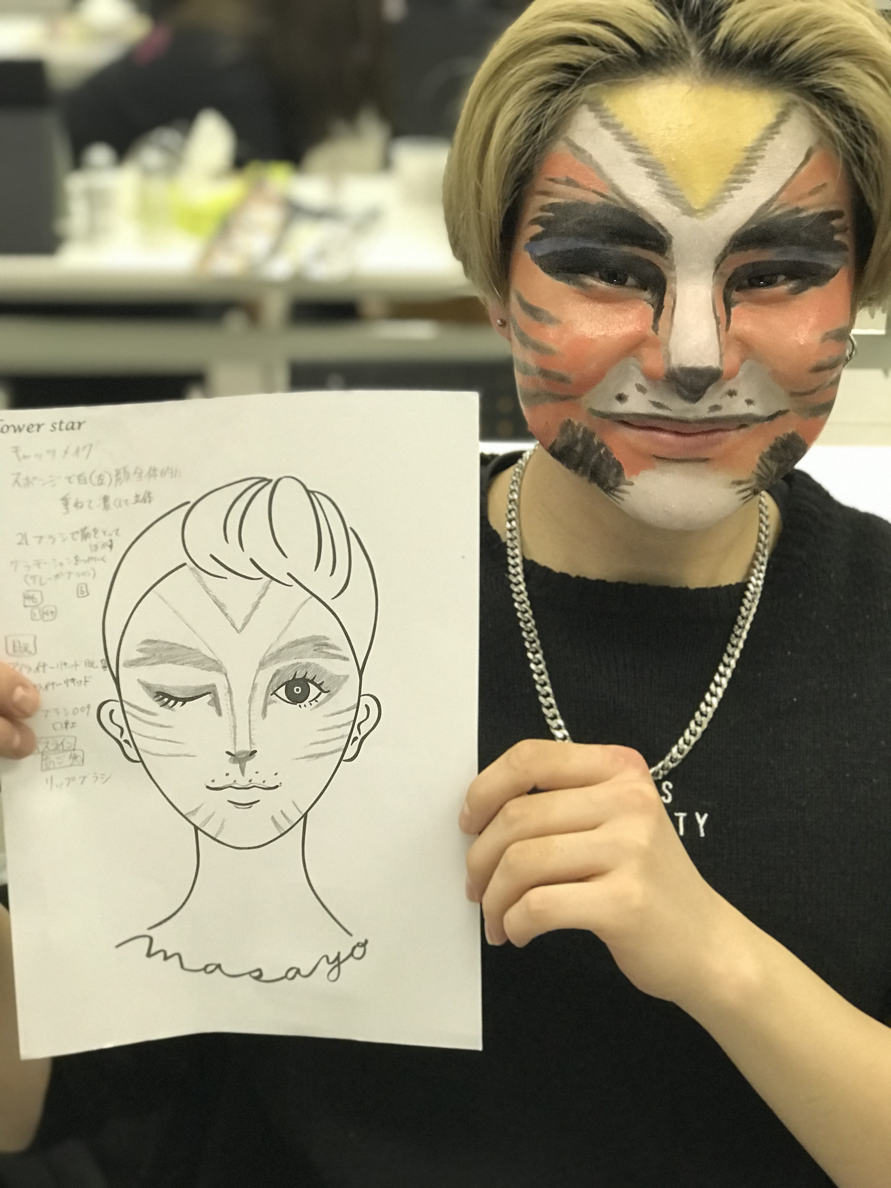 先生から習って、用紙に描いてみて、メイク開始です‼